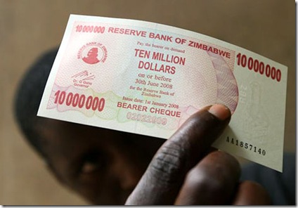 Thanks to the leadership of Robert Mugabe, Zimbabwe now is the world's highest inflation rate, officially estimated at 25,000 percent annually (the real inflation may be closer to 150,000 percent).