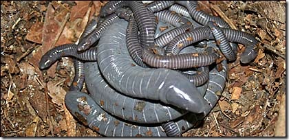 The Caecilian [wiki] is an amphibian that superficially resemble earthworms or snakes. But because it mostly lives hidden in the ground, it has become the least explored order of amphibians, and widely unknown. Not until recent, scientists discovered that it has a bizarre parental behaviour--the caecilian mother allows her young to peel off and eat her skin. It has been filmed on camera by building a set which resembled the creature's living environment for the broadcasting network's Life In Cold Blood series.