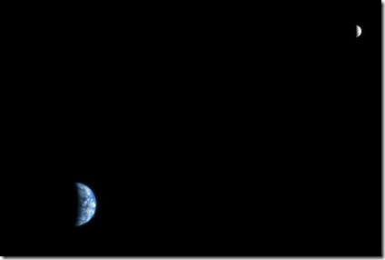 The HiRISE camera on NASA's Mars Reconnaissance Orbiter [wiki] took this picture of Earth and Moon on October 3, 2007, when Earth was 142 million kilometers (88 million miles) from Mars. On the Earth image one easily can make out the west coast outline of South America at lower right and the clouds are the dominant features. via Digg
